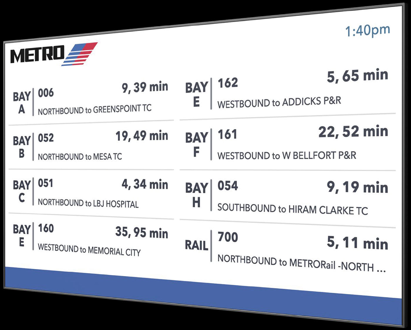 Use arrival predictions from GMV Suite, GMV Sync, or a vendor you’re already working with to track your buses & trains.